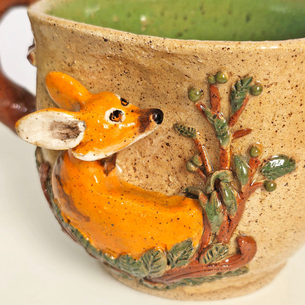 Ecultura cervo com ave na argila terracota